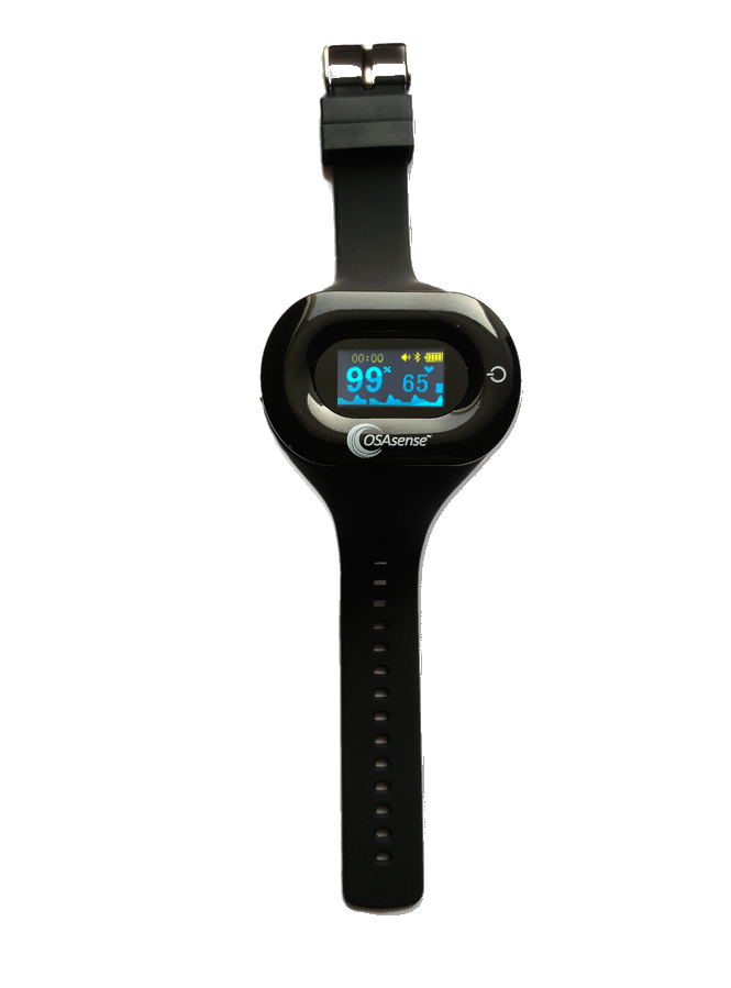 The OSAsense service consists of a validated online questionnaire and an overnight saturation measurement, also known as pulse oximetry. The pulse oximeter used is shaped like a watch and measures the percentage of oxygen in the blood during sleep. Based on the questionnaire and saturation measurement, the OSAsense algorithm is able to detect sleep apnea with a sensitivity and specificity of ~100% and >70%, respectively. When general practitioners use OSAsense before referring patients to a sleep center, there are two benefits: