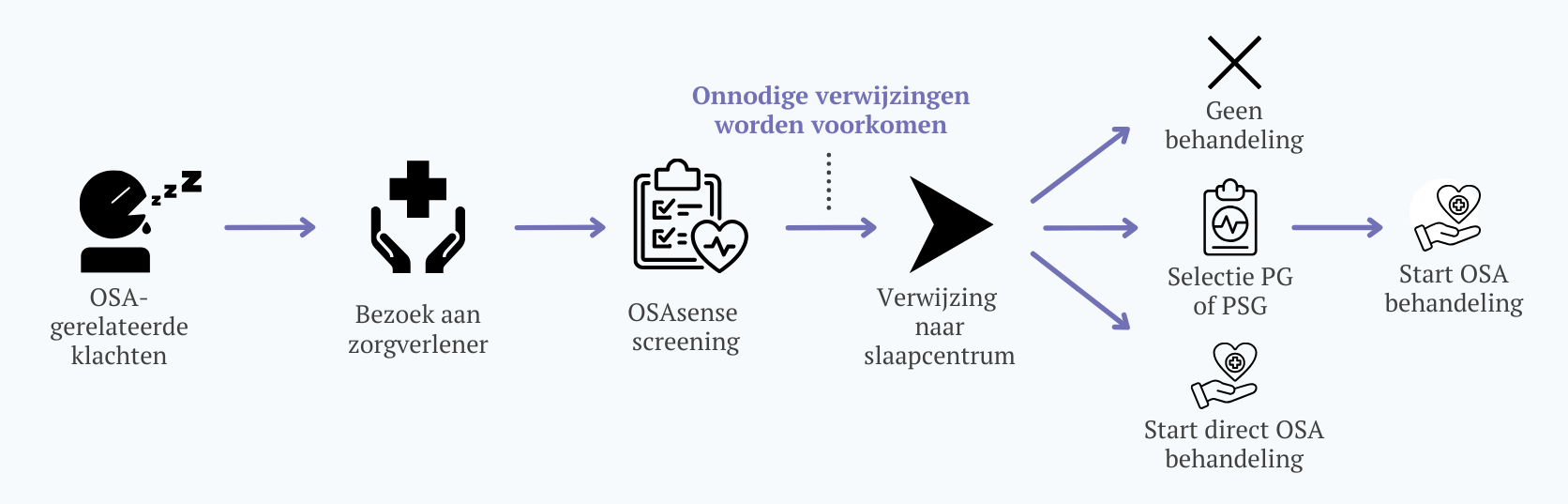 Huisartsen gebruiken OSAsense als laagdrempelig hulpmiddel om slaapapneu uit te sluiten bij een vermoeden van deze aandoening. Met OSAsense verminderen huisartsen het aantal patiënten dat onnodig een kostbaar slaaponderzoek ondergaat en biedt het kansen voor de groep mensen die al jarenlang te maken hebben met slaapapneu gerelateerde klachten.